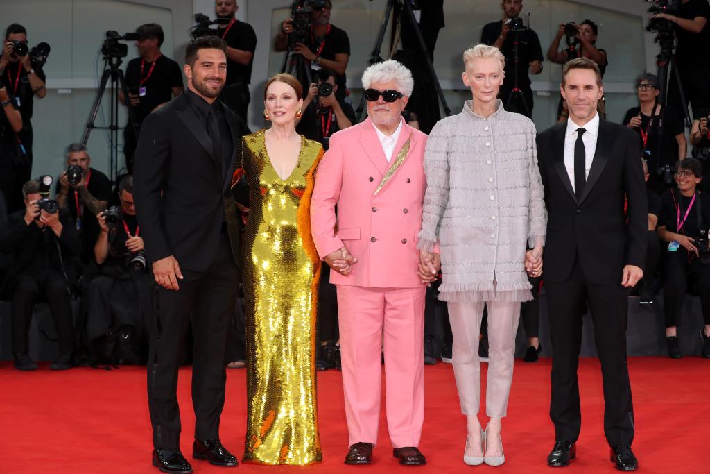 9月2日,在意大利威尼斯舉行的第81屆威尼斯國際電影節(jié)上,主競賽單元影片《隔壁房間》主創(chuàng)亮相首映式紅毯。新華社記者 李京 攝