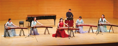 壓軸登場的古箏協(xié)奏曲《紫禁·瑤光》堪稱本場演出視聽亮點(diǎn)。吉煒領(lǐng)奏的團(tuán)隊(duì)以傳統(tǒng)箏搭配七聲弦制古箏及復(fù)原古樂器筑、軋箏,在王梓碩的打擊樂配合下,既展現(xiàn)宮廷音樂的風(fēng)雅,又以“玉之光采”頌揚(yáng)君子品格,古樸與創(chuàng)新的融合贏得全場持久掌聲。