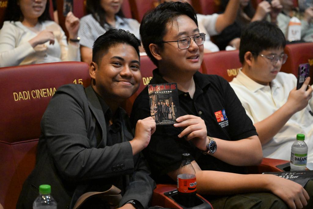 8月24日,在馬來(lái)西亞吉隆坡,觀眾在《南京照相館》馬來(lái)西亞首映禮上展示電影票。新華社記者 程一恒 攝