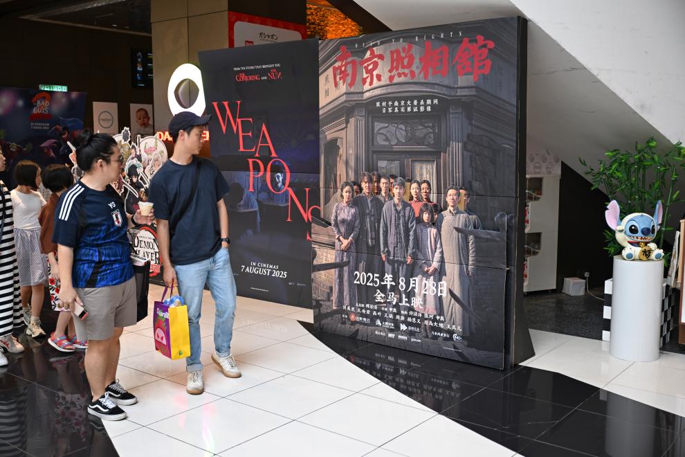 8月24日,在馬來(lái)西亞吉隆坡,民眾觀看《南京照相館》電影海報(bào)。新華社記者 程一恒 攝