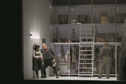 “這一版《女武神》舞美布景充滿哲思?!痹S忠說(shuō)。舞臺(tái)設(shè)計(jì)卡爾海因茨·貝爾將《女武神》的舞臺(tái)空間形容為“流動(dòng)的過(guò)程”。舞臺(tái)上,空間的轉(zhuǎn)換不斷發(fā)生,不同場(chǎng)域在連續(xù)的過(guò)渡中彼此連接。看似傳統(tǒng)的寫(xiě)實(shí)場(chǎng)景很快被打破,一些場(chǎng)景中許多個(gè)空間同時(shí)疊加,有時(shí)同一空間在不同幕之間重復(fù)使用,但狀態(tài)不斷變化?!坝^眾只需保持興趣、沉浸感受,便能捕捉每個(gè)角色與空間獨(dú)有的‘跌落時(shí)刻’。”