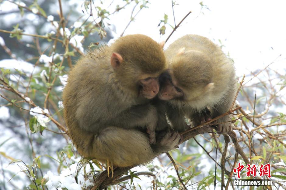 2月22日正值元宵佳節(jié),湖南張家界核心景區(qū)武陵源喜降春雪。在黃石寨景區(qū),成群的野生獼猴或在雪中追逐戲鬧,或在樹(shù)枝上攀爬跳躍,或蜷縮著身子賣(mài)萌,成為張家界武陵源的一道春季新景。吳勇兵 攝