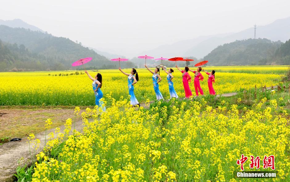 3月20日,江西省德興市??阪?zhèn)杜村婦女在田間花?!白咝恪?。當(dāng)日,江西德興市??阪?zhèn)杜村一批家庭婦女以千畝油菜花海為舞臺(tái),展示自己的才藝形象,希望宣傳家鄉(xiāng)的自然生態(tài)與人文歷史,擴(kuò)大旅游知名度和影響力。德興市海口鎮(zhèn)杜村交通便利,自然風(fēng)光優(yōu)美,村內(nèi)有歷史古跡和名木古樹(shù)。 胡敦煌 攝
