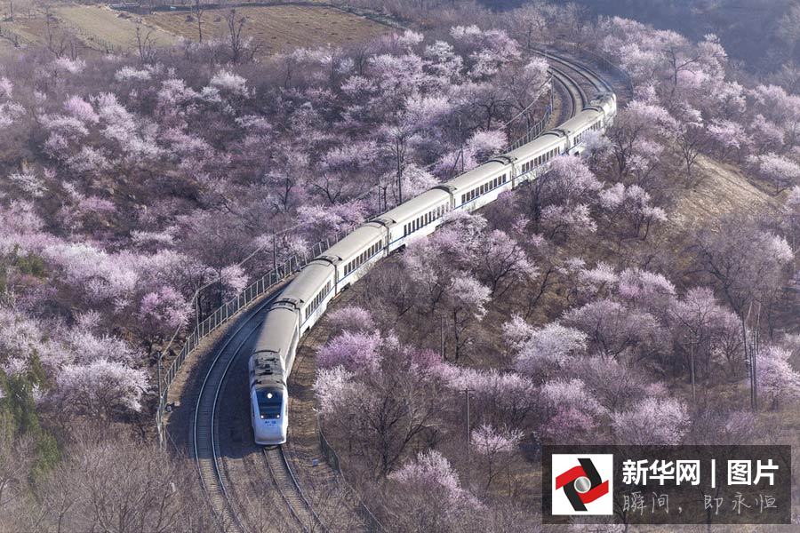 和諧號穿越居庸關(guān)花海 美到窒息
