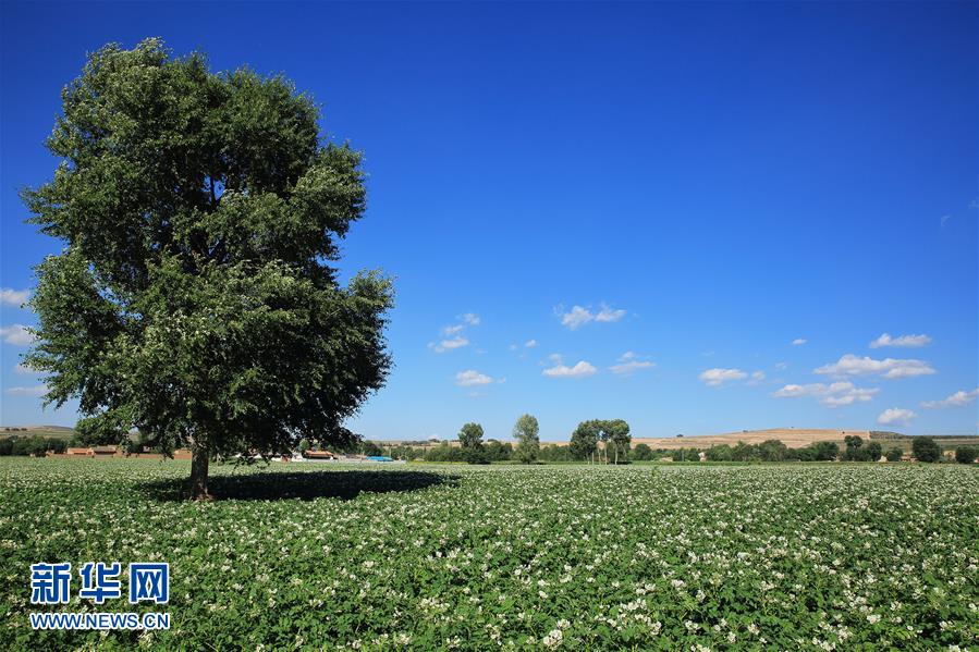 盛夏時節(jié),中國馬鈴薯之鄉(xiāng)甘肅定西的馬鈴薯進入開花期,眾多白色的花朵扮美田野。 新華社發(fā)(陳永剛 攝)