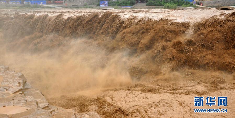 近日,受上游地區(qū)強降雨天氣影響,位于山西吉縣和陜西宜川縣交界的黃河壺口瀑布水量大漲。目前,壺口景區(qū)已啟動應(yīng)急預(yù)警,工作人員加強上游水情監(jiān)測并加大安全巡查力度,確保游客安全。新華社發(fā)(呂桂明 攝)
