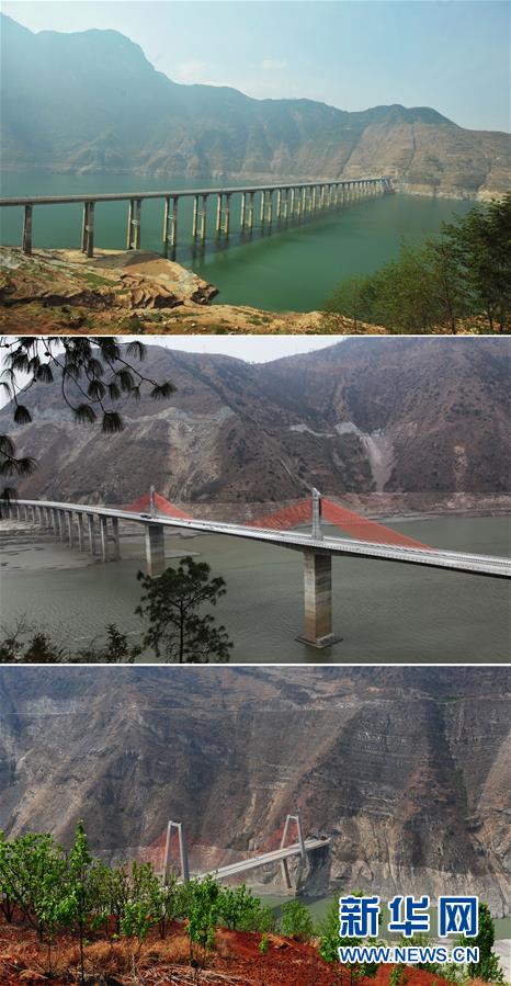 雅西高速瀑布溝庫區(qū)路段3座跨大渡河特大橋:青杠嘴特大橋(上圖)、觀音巖特大橋(中圖)、蘇村壩特大橋(下圖,拼版照片,攝于2012年4月12日)。1935年5月24日、25日間,紅軍“十七勇士”在槍林彈雨中,以一條木船強(qiáng)行從安順場渡河,在國民黨軍視為天險(xiǎn)的大渡河防線上,撕開了一個(gè)缺口,為紅軍沿大渡河兩岸夾河北上奪占瀘定橋創(chuàng)造了有利條件。 “紅軍不怕遠(yuǎn)征難,萬水千山只等閑。”長征譜寫了一曲人類征服自然的凱歌,峽谷激流、雪山草地、物資匱乏、生命禁區(qū),這一切都不能阻擋紅軍前進(jìn)的步伐。80年過去,滄海桑田,紅軍長征走過的荒郊野嶺,如今樓宇林立,欣欣向榮;徒步翻越的大山、攻克的關(guān)隘、沼澤遍布的草地、泅渡的河流,修起了通暢快捷的公路和大橋……長征之路發(fā)生了翻天覆地的變化,昔日的艱難險(xiǎn)阻正漸漸變成康莊通途。新華社記者江宏景攝