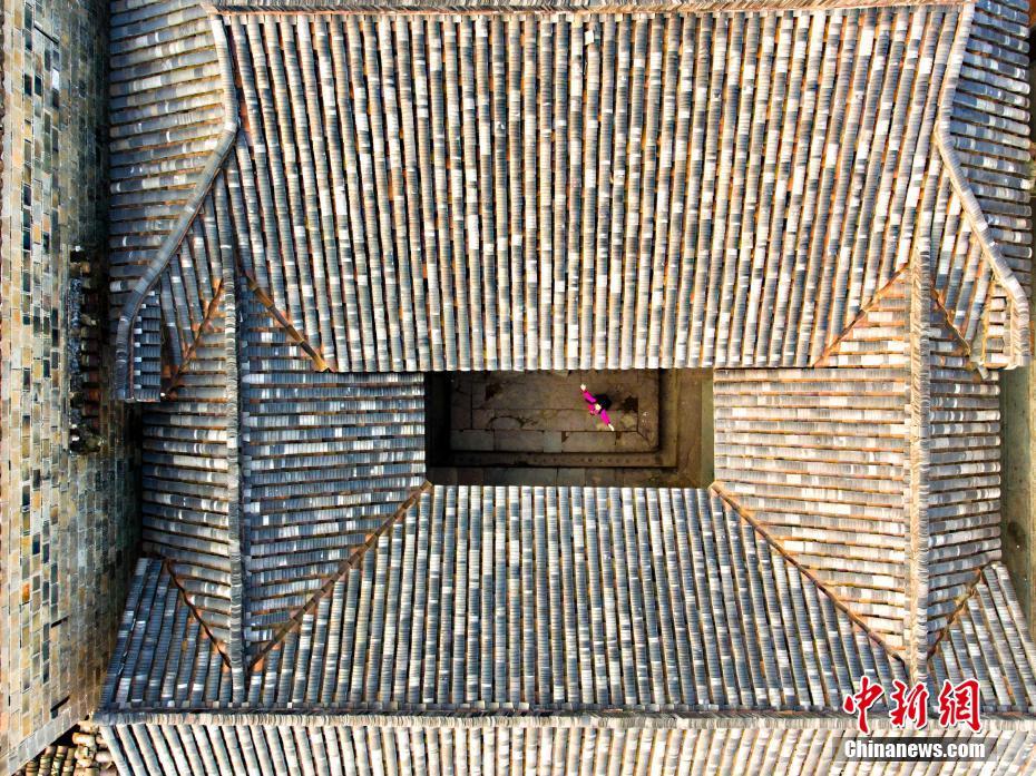 12月10日,航拍位于江西金溪縣有著600多年歷史的中國(guó)歷史文化名村、中國(guó)傳統(tǒng)村落竹橋古村,俯瞰全村,形似一柄巨扇。該村現(xiàn)保存有明代所建民居8幢,明代祠堂1幢,其余為清代建筑,青磚灰瓦,樸實(shí)素雅,為贛派建筑最典型的代表。村前溪水長(zhǎng)流,良田萬(wàn)頃,村后茂林修竹,鳥(niǎo)鳴樹(shù)幽,身歷其境,如入畫(huà)中。傅建斌 攝