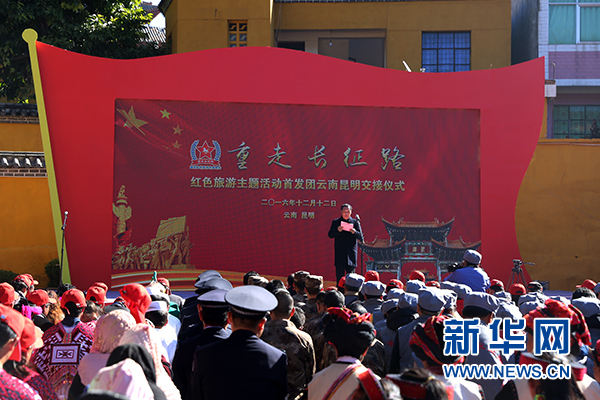 “重走長征路”紅色旅游主題活動首發(fā)團云南昆明交旗儀式現(xiàn)場。