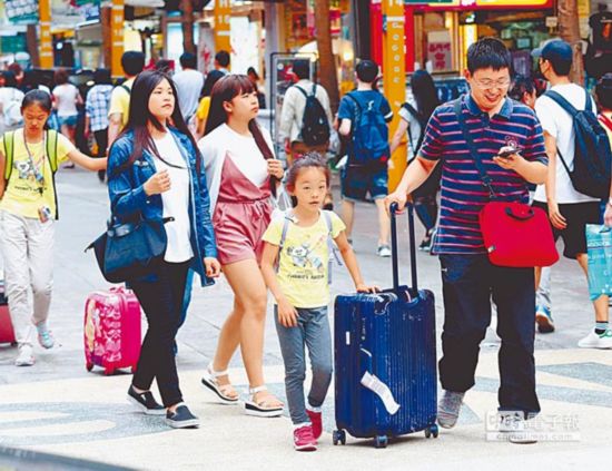 西門町過去常見赴臺(tái)大陸游客。(圖片來源:臺(tái)灣《旺報(bào)》) 少見大陸游客蹤影 小商販業(yè)績頻頻掉 65歲施義舜4年前退休后自費(fèi)6萬多(新臺(tái)幣,下同)采購一輛電動(dòng)四輪車,成為觀光導(dǎo)覽員載送大陸游客游老街。他說當(dāng)時(shí)生意好到電動(dòng)車在廣場(chǎng)上大排長龍等載客,如今沒有大陸游客生意至少減5成,現(xiàn)在客人上車還先殺價(jià)。 在騎樓擺攤賣皮件的黃先生則說,臺(tái)灣制造的皮夾、皮帶好看又耐用,質(zhì)量有保證,大陸游客常買回去當(dāng)紀(jì)念品或送親友很,過去薄利多銷,一大早就生意強(qiáng)強(qiáng)滾;現(xiàn)在路過游客大多只看不買,生意少了2、3成,即使工廠成本提高,他也不敢漲價(jià)。 后車巷里藝品店業(yè)者林本興則說,大陸游客購買力強(qiáng),喜歡買茶壺、鐵壺普洱茶收藏,現(xiàn)在幾乎不見蹤影,只能顧好老主顧,業(yè)績也掉了2成。