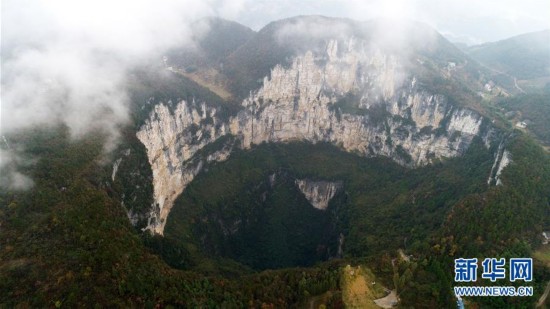 這是11月28日航拍的重慶奉節(jié)小寨天坑。小寨天坑位于重慶市奉節(jié)縣興隆鎮(zhèn)小寨村,坑深666米,是聞名中外的世界地質奇觀。 新華社發(fā)