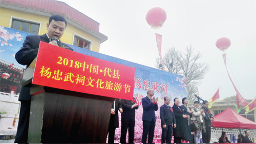 本報訊 為了弘揚楊家將忠勇愛國的名將精神,提升楊忠武祠的知名度和影響力,由中共代縣縣委宣傳部、代縣文化旅游發(fā)展委員會、代縣新聞辦公室、代縣廣播電視臺主辦,代縣棗林鎮(zhèn)人民政府協(xié)辦的楊忠武祠文化旅游節(jié)4月13日——24日在鹿蹄澗村隆重舉行,此次旅游節(jié)嘗試文化+旅游+體育的模式促進代縣文化旅游發(fā)展,旨在弘揚傳統(tǒng)文化,助推鄉(xiāng)村振興,傳播健康綠色運動。
