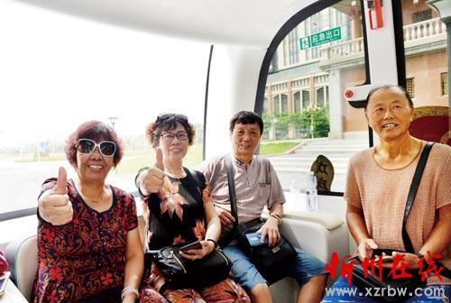 8月20日,參加體驗乘坐的市民為無人駕駛小型巴士“點贊”。