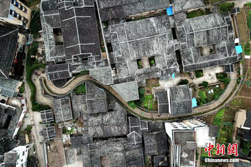 12月8日,空中鳥(niǎo)瞰福建千年古鎮(zhèn)——永泰嵩口古鎮(zhèn),背面靠山,三面環(huán)水,風(fēng)景秀麗。古鎮(zhèn)歷史可以追溯到宋朝,因地理位置優(yōu)越,嵩口古鎮(zhèn)自古就是閩中重要商埠、水陸交通樞紐,至今留存下的明清古民居多達(dá)一百二十多座。中新社記者 王東明 攝