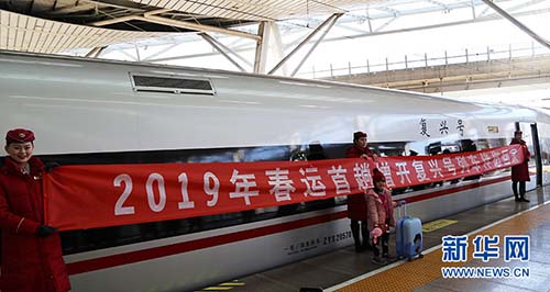 新華網(wǎng)北京1月21日電(徐寧)“媽媽,你看,這就是我們回家的車?!笨吹嚼欣钕溆孚s來的小女孩,鐵路工作人員微笑地遞給她一個佩奇。拿著佩奇,小女孩高高興興地上了列車。2019年1月21日13點(diǎn)15分,北京地區(qū)春運(yùn)首趟增開復(fù)興號旅客列車G4215次從北京南站駛出。這是鐵路部門首次使用復(fù)興號擔(dān)當(dāng)增開列車,讓返家旅客有更美好的出行體驗(yàn)。