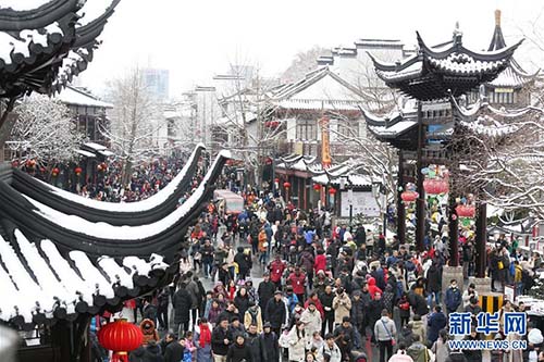 2月8日,游客在南京夫子廟景區(qū)游覽。新華社發(fā)(王新 攝)
