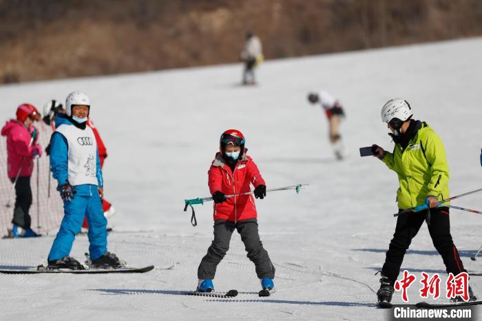 2022年1月4日,北京萬科石京龍滑雪場,市民在雪場練習滑雪技巧。 中新社記者 盛佳鵬 攝