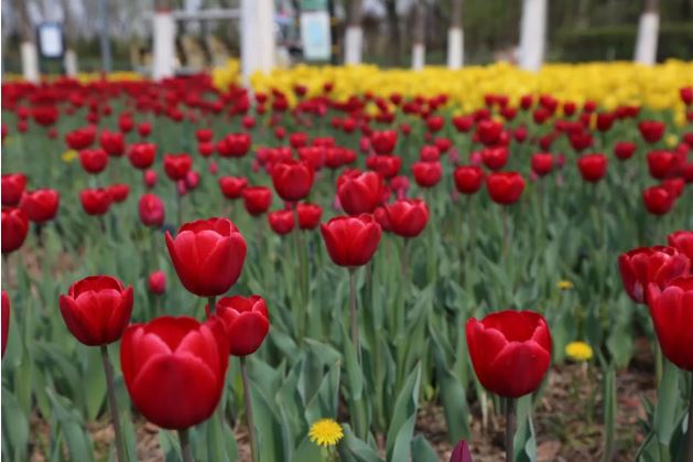 ▲晉陽(yáng)湖公園百萬(wàn)余株郁金香進(jìn)入最佳觀賞期