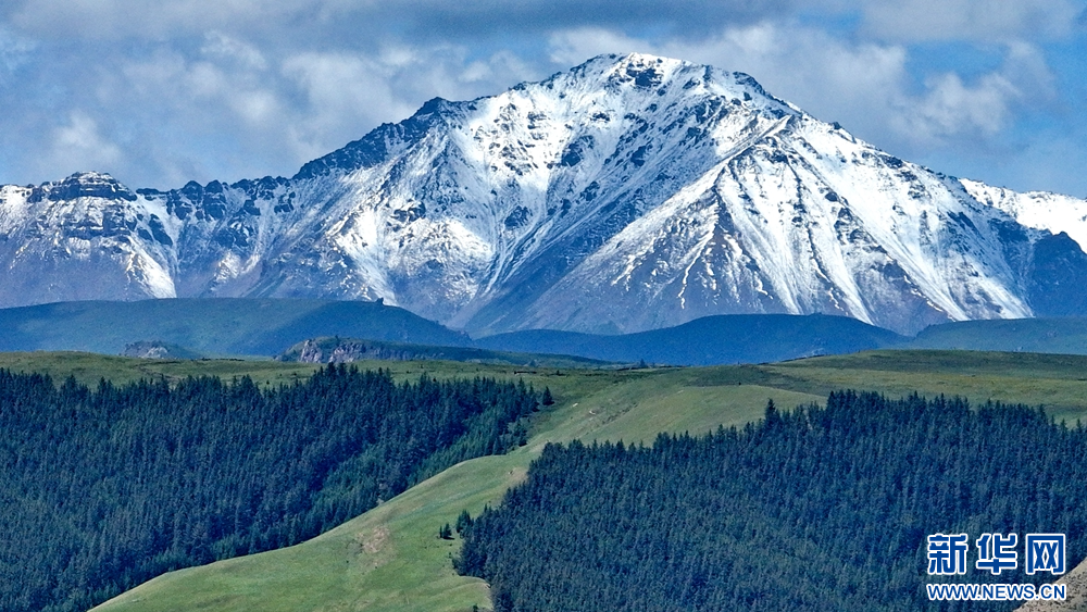 盛夏時(shí)節(jié),祁連山國(guó)家公園甘肅省張掖市肅南裕固族自治縣康樂鎮(zhèn)段,湛藍(lán)的天空飄著朵朵白云,映襯著巍峨的雪峰和碧綠的大地,牛羊在青草中浮動(dòng),像一把珍珠撒在了綠色的絨毛毯上,勾勒出一幅天然秀麗的生態(tài)畫卷。新華網(wǎng)發(fā)(王將 攝)
