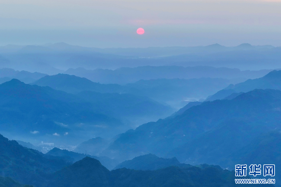 日出群山,宛如一幅水墨畫卷(視頻截圖)。新華網(wǎng)發(fā)(大關縣融媒體中心供圖)