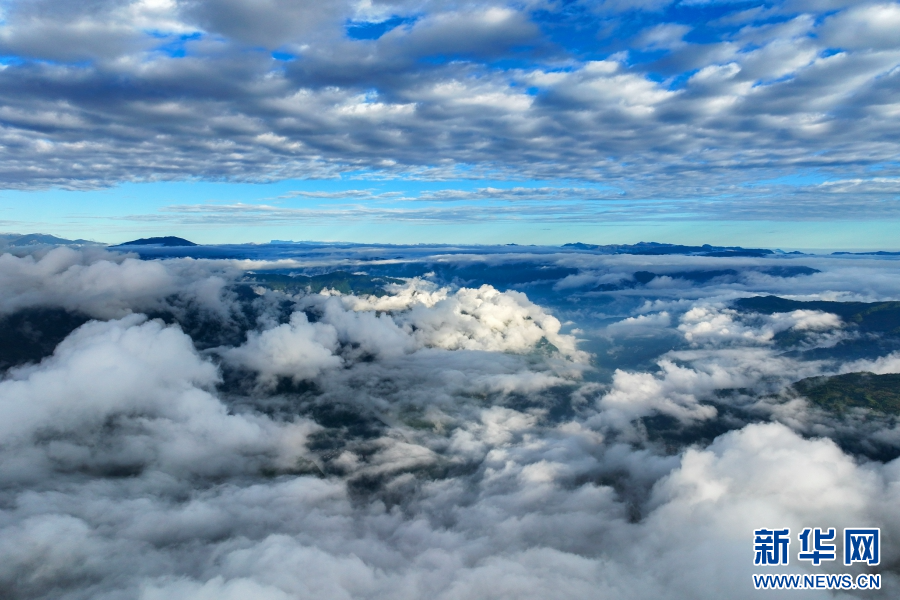 山巒云海宛如仙境(視頻截圖)。新華網(wǎng)發(fā)(大關縣融媒體中心供圖)