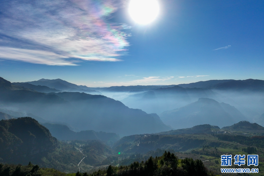 天空現(xiàn)“七彩祥云”(視頻截圖)。新華網(wǎng)發(fā)(大關縣融媒體中心供圖)