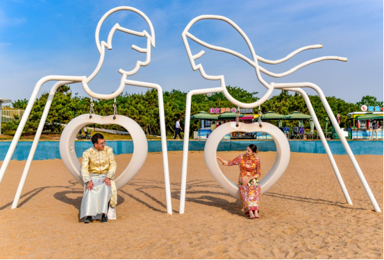 沙灘上的網(wǎng)紅打卡點(diǎn)成為拍攝婚紗照的熱門(mén)地。新華網(wǎng)發(fā)(葉連俊 攝)