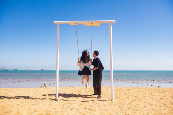 游客在沙灘秋千上享受海風(fēng)吹拂的浪漫。新華網(wǎng)發(fā)(陳光金 攝)