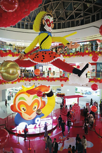 1.在解放路萬達(dá)廣場(chǎng)內(nèi),兩個(gè)巨大的1961年版《大鬧天宮》美猴王造型吸引眾多市民打卡留念。