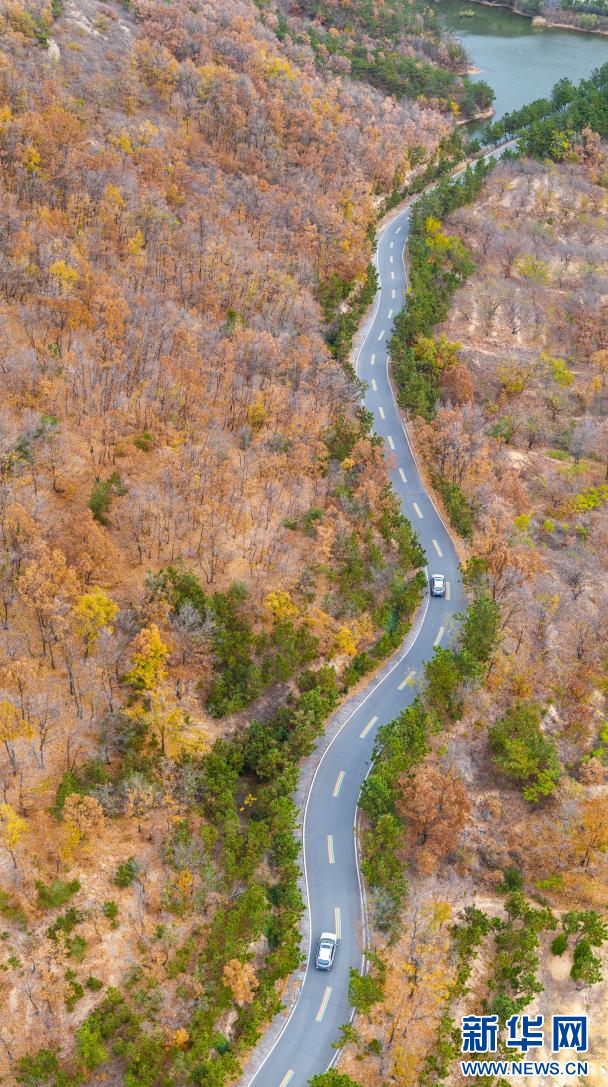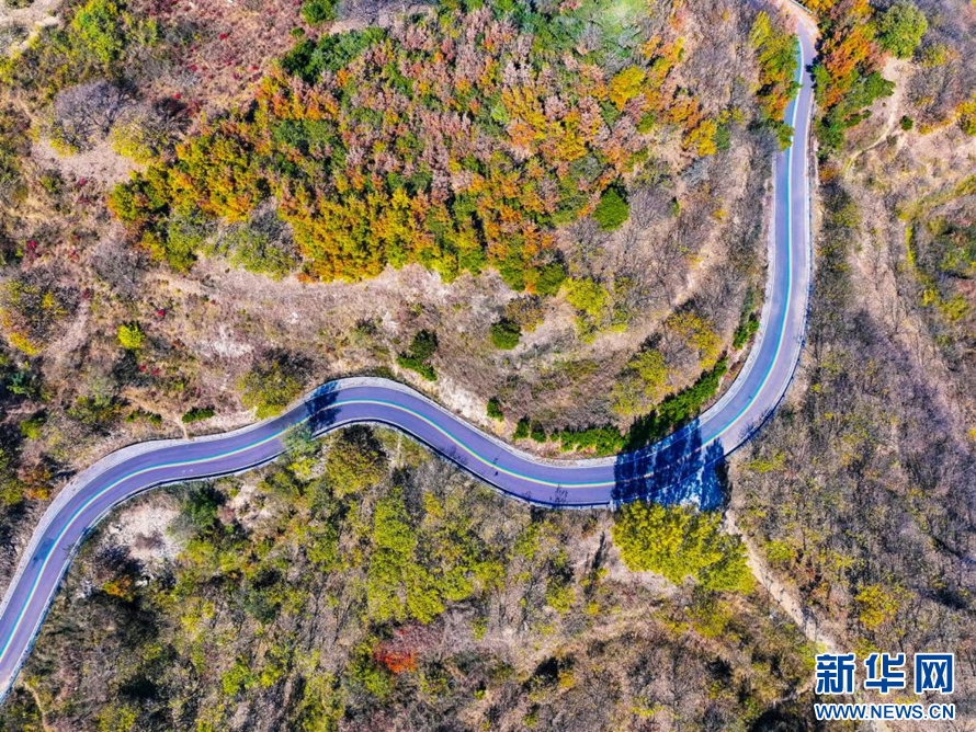 盤山公路仿佛一條飄帶纏繞在山間(無人機(jī)照片)。新華網(wǎng)發(fā)(薄林 攝)