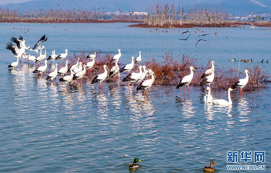 近年來(lái),廬江縣加大黃陂湖濕地保護(hù)力度,4萬(wàn)多畝的濕地環(huán)境得到較大改善。每年冬季,東方白鸛、白鶴等大量珍稀候鳥都按時(shí)來(lái)此過(guò)冬,萬(wàn)鳥齊飛的壯觀場(chǎng)面已經(jīng)成為廬江縣黃陂湖濕地最靚麗的風(fēng)景。新華網(wǎng)發(fā)(左學(xué)長(zhǎng) 攝)