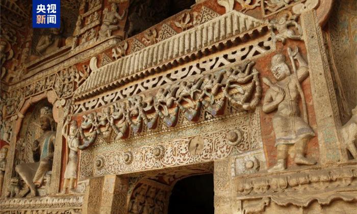 今天,經(jīng)過(guò)15個(gè)月的系統(tǒng)性維護(hù),世界文化遺產(chǎn)云岡石窟第九窟正式恢復(fù)對(duì)公眾開(kāi)放。第九窟位于云岡石窟群中部,是典型的漢風(fēng)洞窟。石窟外觀古樸厚重,崖壁上留存著歲月侵蝕的痕跡,其采用列柱式前后室結(jié)構(gòu),窟內(nèi)四壁分層布龕,現(xiàn)存造像1140余尊(身)。