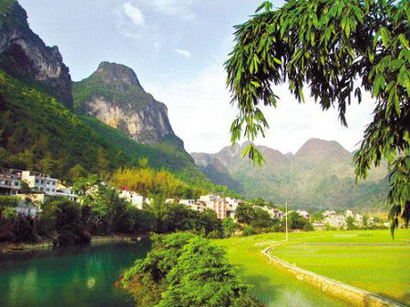 巴馬長(zhǎng)壽村盤陽(yáng)河逶迤地流淌,串起了一個(gè)個(gè)小村落