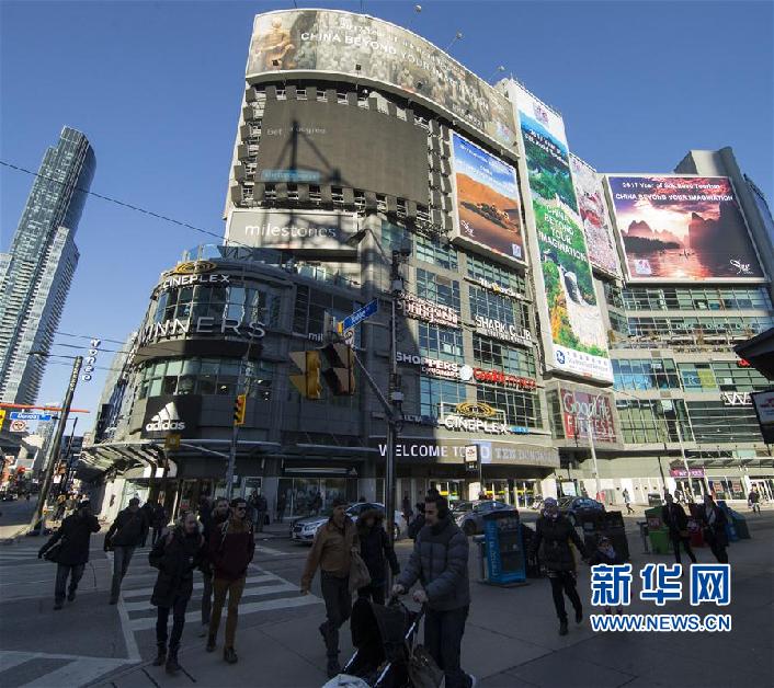 這是1月1日在加拿大多倫多市中心的鄧達(dá)斯廣場(chǎng)拍攝的“美麗中國(guó)——2017絲綢之路旅游年”主題宣傳廣告牌。從2016年12月26日起,由中國(guó)國(guó)家旅游局推出、以“美麗中國(guó)——2017絲綢之路旅游年”為主題的大型旅游宣傳廣告在加拿大多倫多市中心鄧達(dá)斯廣場(chǎng)亮相,向人們展示中國(guó)美麗而豐富的旅游資源。整個(gè)活動(dòng)將持續(xù)5周。新華社發(fā)(鄒崢攝)