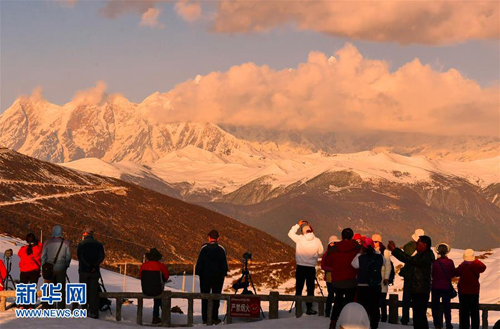 眾多攝影愛好者靜待南迦巴瓦峰露真容(4月2日攝)。春日,常年云霧繚繞的南迦巴瓦峰時而露出真容,吸引大批游客駐足拍攝。西藏林芝市的南迦巴瓦峰地處橫斷山脈、喜馬拉雅山脈和念青唐古拉山脈的交匯處,其巨大的三角形峰體終年積雪,云霧繚繞,從不輕易露出真面目,所以它也被稱為“羞女峰”。新華社記者 張汝鋒 攝