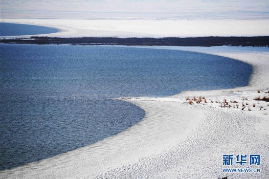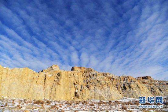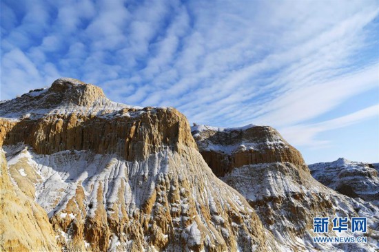11月26日拍攝的新疆福??h烏倫古湖海上魔鬼城景區(qū)美景。 福??h烏倫古湖海上魔鬼城景區(qū)位于新疆阿勒泰地區(qū)福海縣吉力湖東岸,有著獨(dú)特的雅丹地貌和水域景觀,是當(dāng)?shù)刂穆糜蝿俚亍?新華社記者 沙達(dá)提 攝