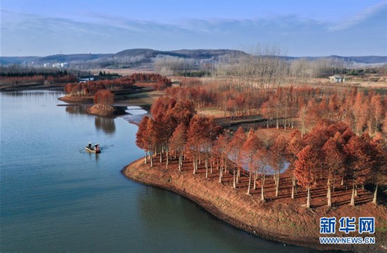 初冬之際,在江蘇盱眙天泉湖畔,連片的紅杉呈現(xiàn)鮮艷的色彩,構(gòu)成獨特的景觀畫卷。天泉湖在生態(tài)建設(shè)時種植紅杉,目前已成為有名的生態(tài)旅游目的地。