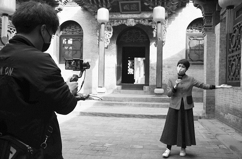 喬家大院景區(qū)導游化身為網(wǎng)絡主播,帶領觀眾在線探訪喬家大院百年歷史。本報記者 栗美霞 攝