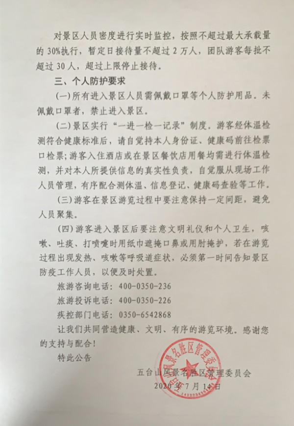 (三)游客在景區(qū)游覽過程中要注意保持一定間距,避免人員聚集。