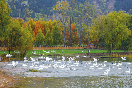 運城的冬天,吸引了大天鵝、火烈鳥、反嘴鷸、蒼鷺、棕頭鷗、灰鶴、黑翅長腳鷸等近200種野生鳥類。當(dāng)成群的大天鵝從遙遠(yuǎn)的西伯利亞飛抵運城,在運城鹽湖景區(qū)、平陸大天鵝景區(qū)、芮城圣天湖景區(qū),均呈現(xiàn)出“萬頃河水碧、一池雪花白”的壯觀景象,三大天鵝觀賞景區(qū)同步開放。成千上萬只白天鵝在黃河岸畔或自在游弋,或追逐戲水,或引吭高歌,為冬日的黃河流域運城段增添了悠然靈動,讓人在此如臨仙境,流連忘返。為方便廣大游客參觀游覽,運城免費開放冬觀天鵝專線城景通,期間周六開設(shè)平陸專線,途經(jīng)鹽湖景區(qū)、周倉文化園、平陸大天鵝景區(qū)等,周日開設(shè)芮城專線,途經(jīng)鹽湖景區(qū)、圣天湖、永樂宮、廣仁王廟、城隍廟等,法定節(jié)假日兩條線同時運行,可在運城高鐵站、北郊億適家超市、運城火車站等市區(qū)公交站點乘坐。