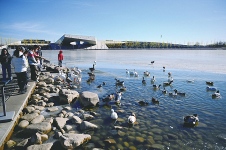 1月11日,太原植物園內(nèi),鵝、野鴨等禽鳥與游客互動嬉戲。近年來,該園良好的生態(tài)環(huán)境吸引了眾多鳥類前來棲息,形成一道和諧美麗的風(fēng)景。