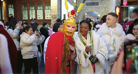 2024年12月4日,中國(guó)的傳統(tǒng)節(jié)日春節(jié)正式列入聯(lián)合國(guó)教科文組織《人類(lèi)非物質(zhì)文化遺產(chǎn)代表作名錄》,標(biāo)志著春節(jié)這一中國(guó)文化瑰寶走向全球,成為全人類(lèi)共同的文化遺產(chǎn)。本次活動(dòng)中,現(xiàn)場(chǎng)也多了許多身著中華傳統(tǒng)服飾的“洋面孔”。這些來(lái)自世界各地的外籍友人身著漢服,記錄在忻州古城的新奇體驗(yàn),從國(guó)際視角感受山西年俗文化的獨(dú)特魅力,進(jìn)一步推動(dòng)了“歡樂(lè)中國(guó)年地道山西味”這一山西文旅IP品牌國(guó)際化傳播。