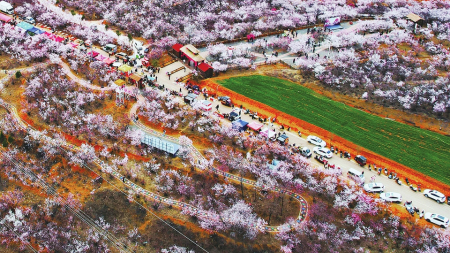 3月16日,游人在垣曲縣皋落鄉(xiāng)嶺回村的桃花嶺賞花。該村依托千余畝山桃花這一特色資源,舉辦桃花節(jié),著力發(fā)展賞花經濟,促進生態(tài)旅游和鄉(xiāng)村振興。