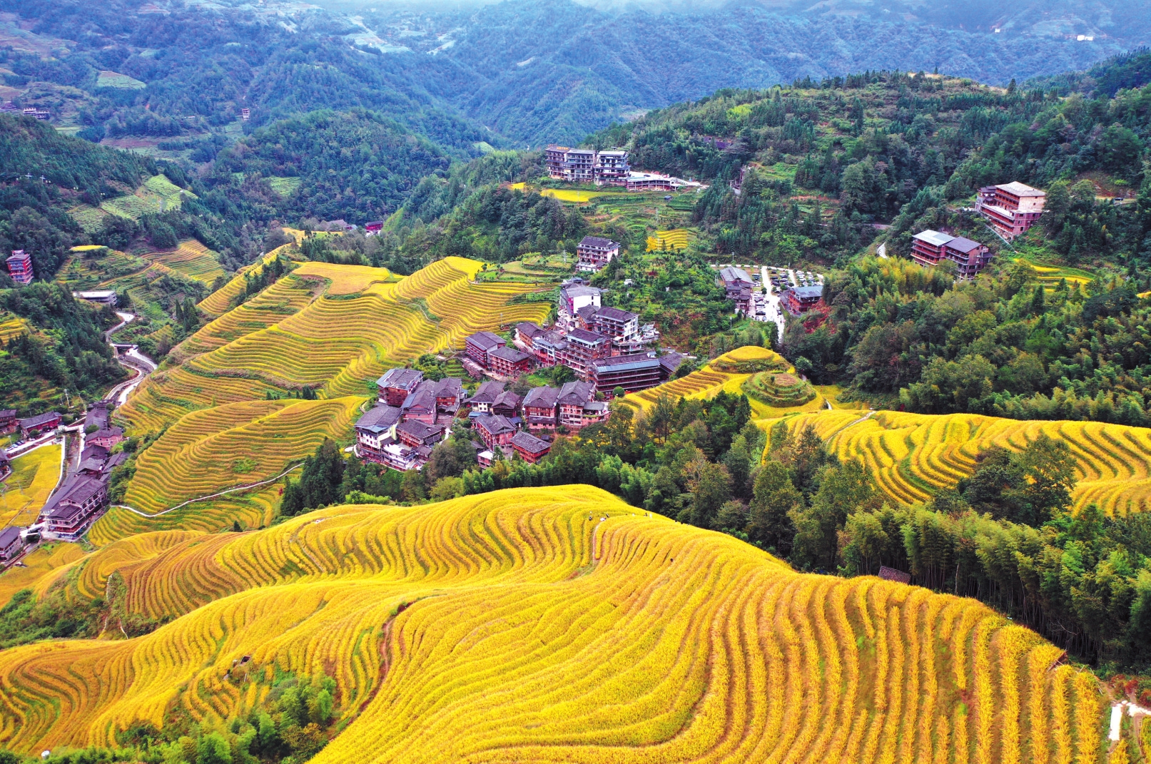 眼下,廣西龍勝各族自治縣龍脊梯田一片金黃,成為眾多游客觀光“打卡”的熱門景點。龍脊梯田已有2300多年歷史,是聯(lián)合國糧農(nóng)組織認證的全球重要農(nóng)業(yè)文化遺產(chǎn)。新華社記者陸波岸 攝