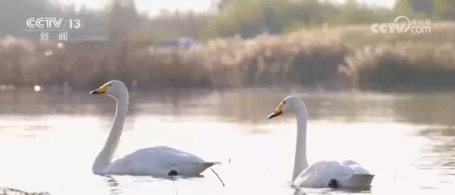 除公園外,在大天鵝頻繁活動(dòng)的農(nóng)田區(qū)域,當(dāng)?shù)卣蔡崆白龊昧藴?zhǔn)備。2025年,三門峽在黃河沿線共種植了1500多畝的小麥、荷花、蒲草等,為大天鵝們漫長(zhǎng)的越冬季提供充足食源。
