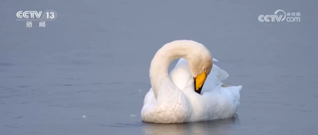 細(xì)心觀察還能發(fā)現(xiàn),鳥(niǎo)群中少數(shù)幾只的脖頸上佩戴著藍(lán)底白字的圓環(huán)。每年越冬季,科研人員會(huì)在保證安全的前提下進(jìn)行環(huán)志工作,給一些大天鵝佩戴這樣的標(biāo)識(shí)并安裝信號(hào)發(fā)射器,更好地追蹤研究它們的遷徙規(guī)律。這只編號(hào)為116的大天鵝是在2022年春天做的環(huán)志,2025年已是這位“老朋友”連續(xù)第4年飛回三門峽越冬。