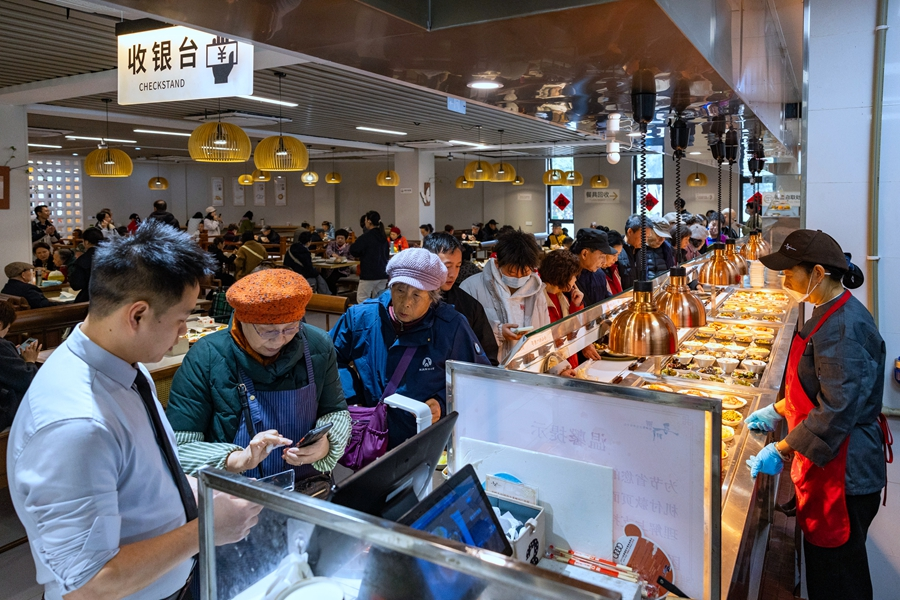 2025年11月18日,游客們在四川博物院食堂內(nèi)排隊(duì)選菜。新華網(wǎng) 張可凡 攝