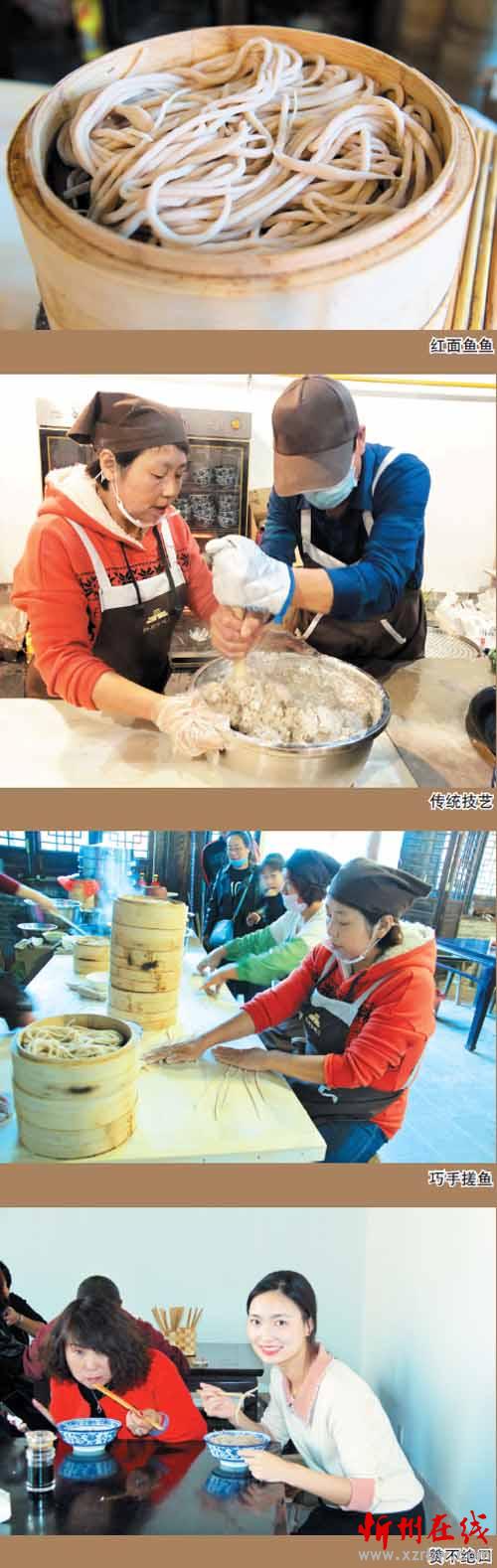 這家店的女主人叫康秀蘭,今年51歲,忻府區(qū)豆羅鎮(zhèn)韓溝村人。秀蘭從小勤快,幫助母親洗鍋?zhàn)鲲垼瑢W(xué)搓魚魚。18歲時便遠(yuǎn)近聞名,掌握了搓魚魚的好手藝。在今年忻州古城招商比賽入圍的6家店鋪中,秀蘭的小店脫穎而出,奪得第一名,拿到了開門店的資格。眼下夫妻二人經(jīng)營著兩間大的門臉兒,小籠屜蒸魚魚,臊子有鮮肉蘑菇、西紅柿和老酸菜湯,食客們可根據(jù)自己的喜好選擇。他們兩口子既當(dāng)老板又是廚師。在食客多時臨時雇幾個幫工,小生意做得風(fēng)生水起??敌闾m告訴筆者,自開張以來食客不斷增加,國慶節(jié)假期期間一天的最高銷售紀(jì)錄是賣出200多籠紅面魚魚。