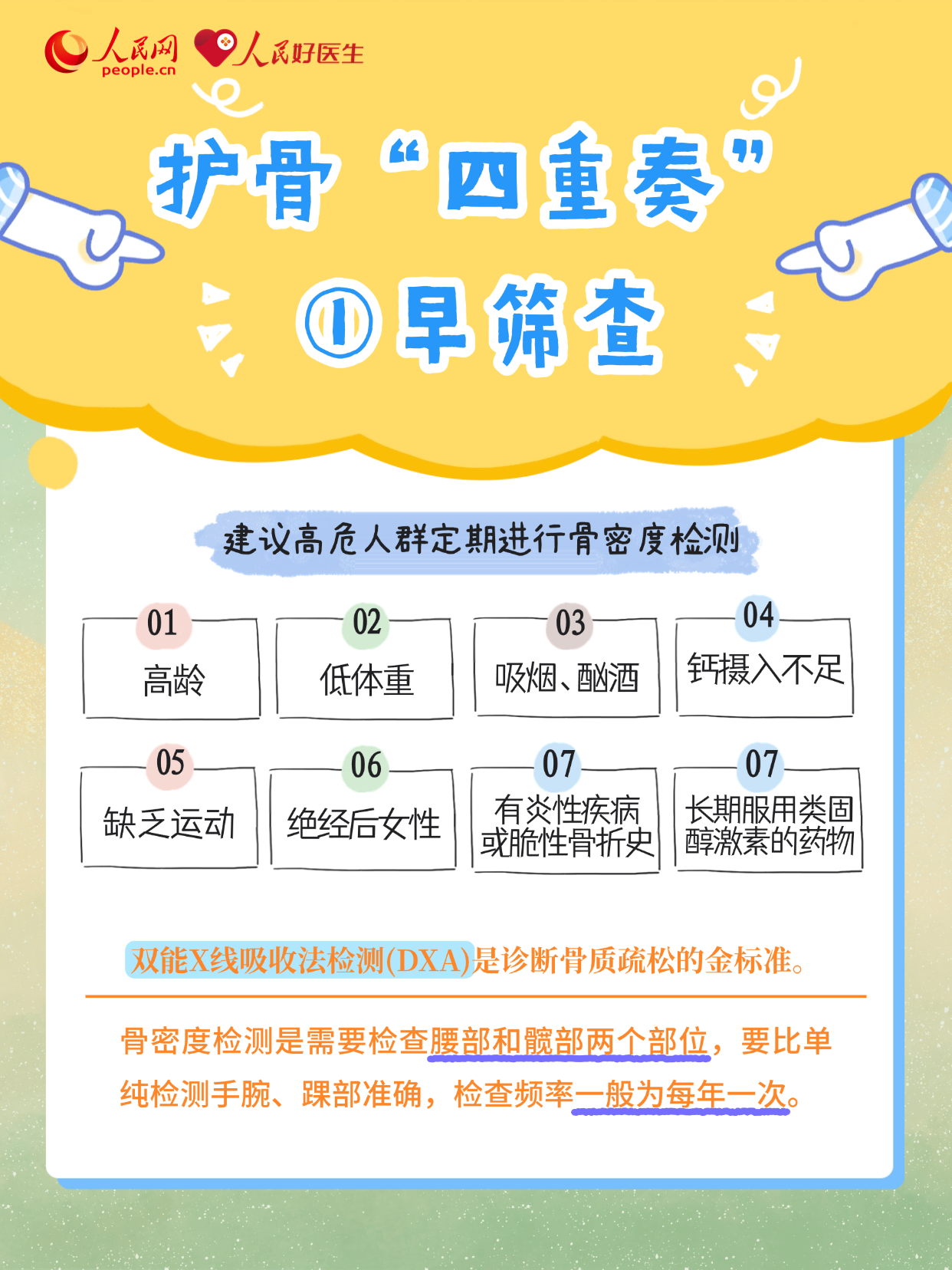 提到骨質(zhì)疏松,人們的腦海中往往會立刻浮現(xiàn)出骨折、身高縮水、駝背等情況,因骨質(zhì)疏松而產(chǎn)生的“疼痛”往往出現(xiàn)的最早最普遍,也最容易被忽視。身體出現(xiàn)哪些疼痛信號需警惕骨質(zhì)疏松風(fēng)險?