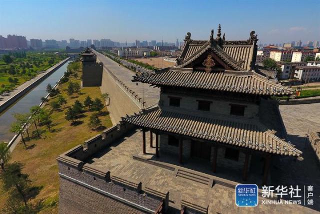 ↑2017年5月18日拍攝的大同古城城墻(無(wú)人機(jī)拍攝)。新華社記者 曹陽(yáng) 攝